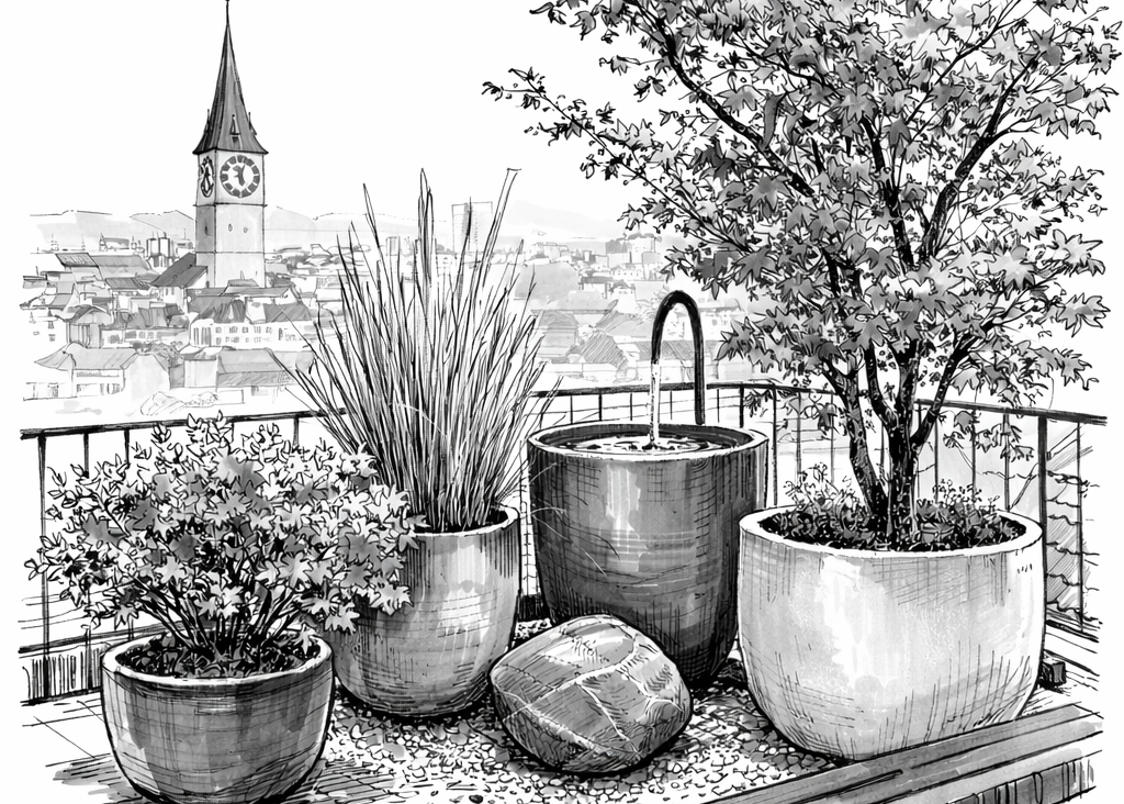 In Zürich entstand für eine Penthousewohnung eine Terrassengestaltung, die den Außenraum in eine ruhige, klare Struktur bringt. Großformatige...